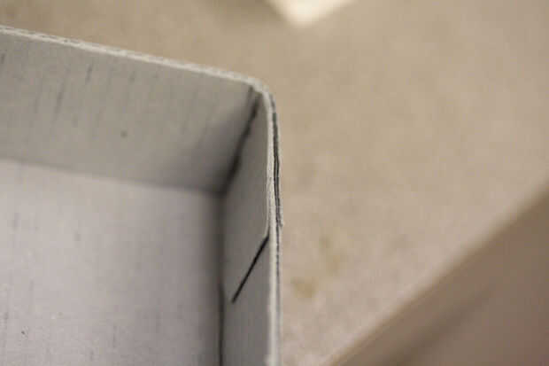 Los papeles de revestimientos externos e internos abrigo alrededor de la Junta para asegurar las esquinas. Aplique una capa delgada de cola a ambos lados.