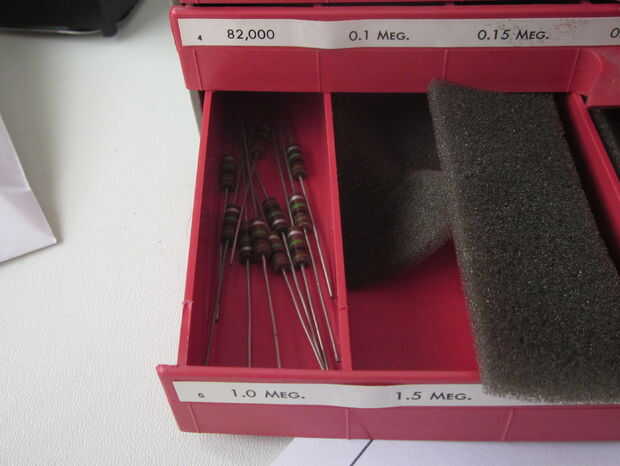 3) resistencia uno 500 kilo-ohm. Fácilmente podría utilizar un 1 mega-ohmio o 2 de mega-ohmios resistencia. El propósito de la resistencia es para asegurarse de que no corriente de alguna otra parte del proyecto en su funda. No sea bueno en todo.