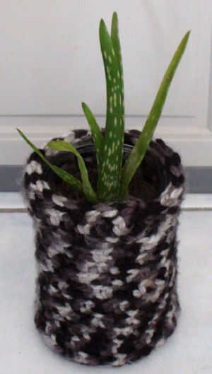 Le pongo un tarro con tierra en él con una planta de Aloe Vera en mi y lo tengo en el umbral de la ventana de la cocina, así que es fácil de agarrar como quemar o cortar yo mismo. Pero depende de usted lo que pone en el tuyo y también tenga en cuenta que hace un gran regalo también!