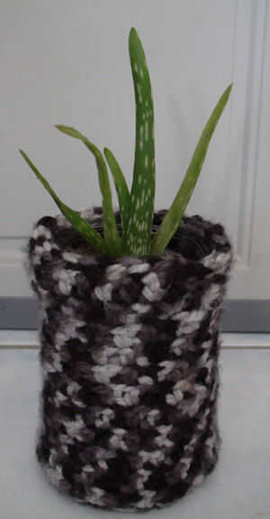 Cuando se tienen la altura correcta y la forma para su elegido Pot, florero o jarra, un * P.de cadeneta alrededor en cada puntada.