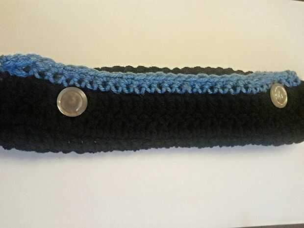 Envuelva su trabajo punto alrededor del cinturón de seguridad y encontrar nuestra para coser los botones.