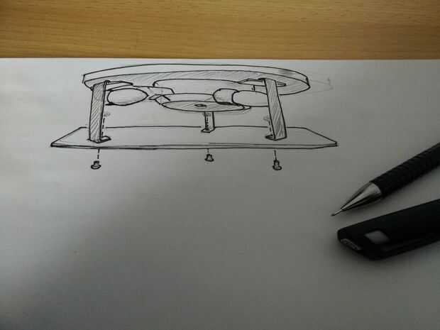El bosquejo es el comienzo. La lámpara tiene tres aletas para colgar una cubierta sobre ella. Usarlos y poner una simple placa de metal por debajo. It´s va a hacer una iluminación indirecta más y atenuar un poco general, pero that´s bien para mí.
