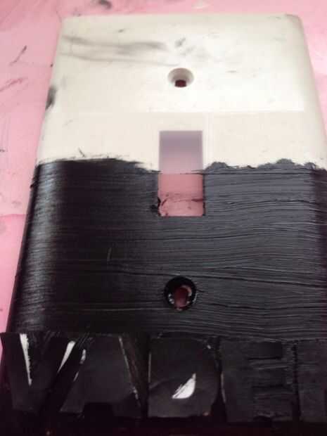 Paso 4: Empezar a pintar una mitad de la cubierta de negro. Pintar sobre las letras así.