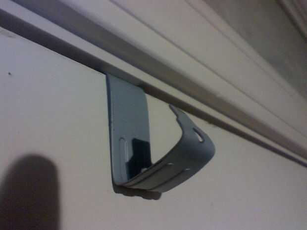 Tomando la parte superior de la PCI cubierta Coloque plana en la parte superior de su puerta con la curva de 90 grados hacia abajo.