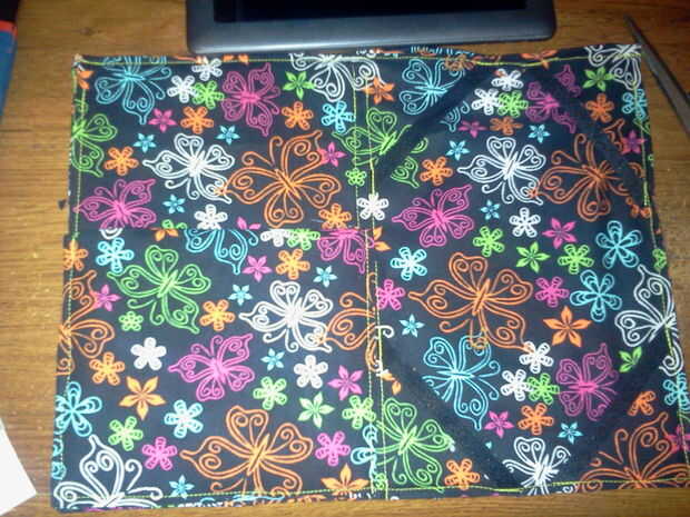 Puede insertar su e-reader (o tablet pequeño) en el bolsillo o en el tiempo elástico lo está usando.