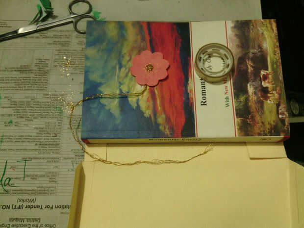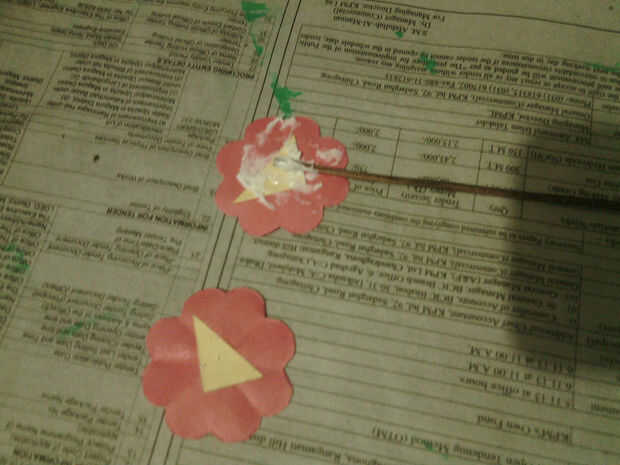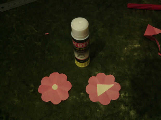 Ahora sigue la medida de papel y doble instrucciones para hacer flores de las imágenes. Por último pegar dos flores con rayas y otro lado de la raya con la cubierta del libro.