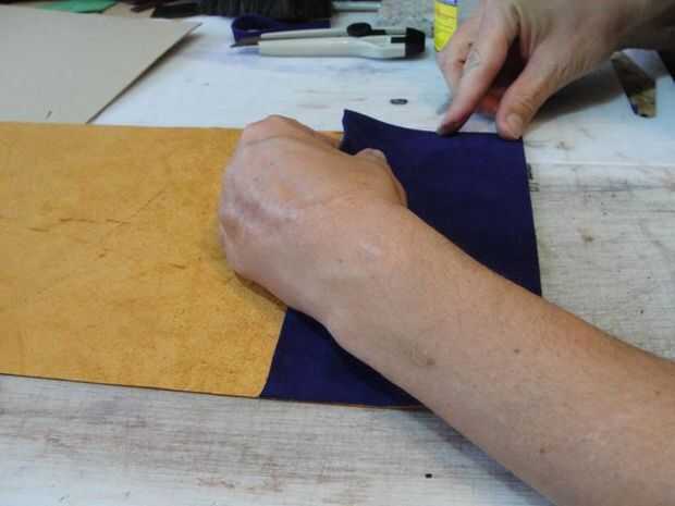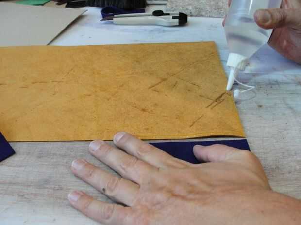 Pegue sus aletas sobre la cubierta haciendo una tira fina de pegamento alrededor de los bordes exteriores. Use lo suficiente para mantener en su lugar hasta que se cosa. No aplique su tira de pegamento para ejecutar pasado el interior borde de la aleta.
