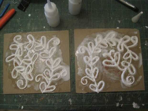Una vez totalmente encolar pincel pegamento acuoso sobre la cosa entera. Esto endurece todo el hilo que no toque las líneas de pegamento. Deje que se seque completamente.