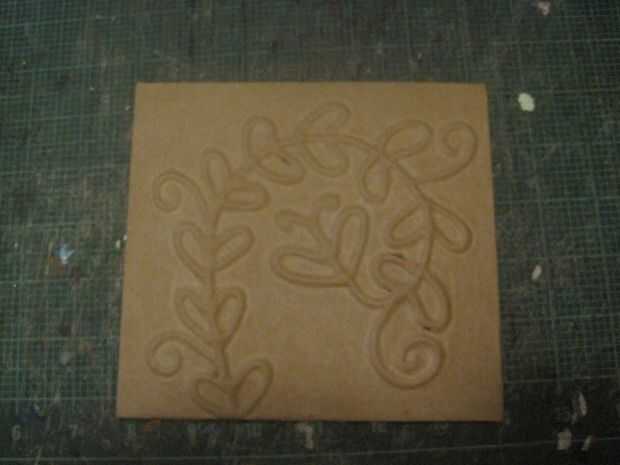 Con un hueso carpeta circulan por el exterior de la imagen y luego el interior. Ir una y otra vez sobre ellos. Y luego un par de veces más. Esta una sola pieza tomó aproximadamente una hora.