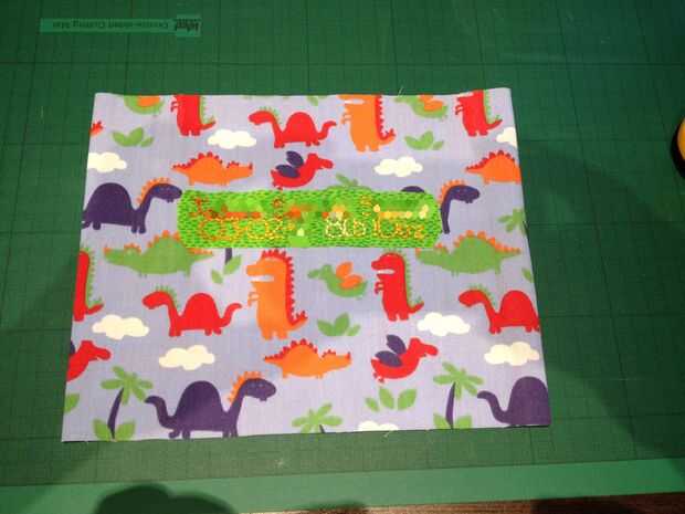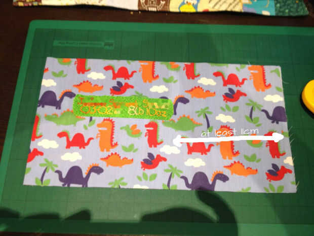 Recuerda: La placa debe ser por lo menos 11cm desde el borde extremo derecho de la tela. Si la tela es en una tira larga delante de usted debe estar en el lado derecho (o la placa se termina en la parte posterior).