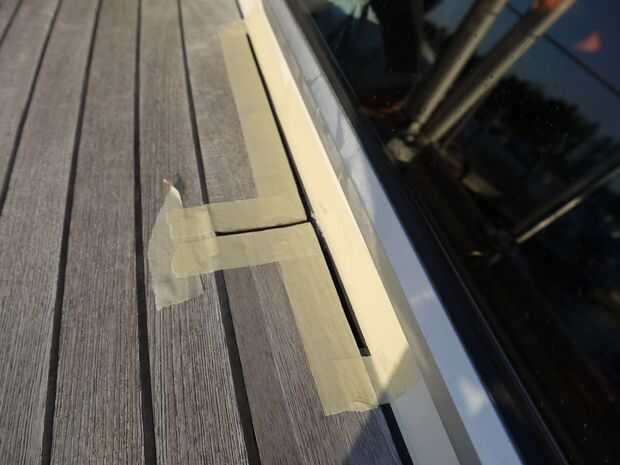 Dejé mis surcos como estaban, pero también puede rellenarlos con masilla para asemejarse más de cerca a teca real. Si desea hacerlo, primera pintura o mancha la madera incluyendo los surcos, si no lo hace la humedad pudre la madera debajo de la masilla.
