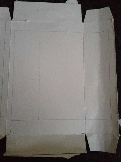 Qué quieres hacer primero es dibujar los contornos de la cubierta. Puede hacer esto por medición y utilizando las dimensiones de la caja o simplemente lo trazado. Como se puede ver en la primera foto solo queremos fijar los lados largos de la cubierta a la unidad central, los otros wil venir más adelante. Las dos líneas dentro del marco son una referencia para doblar en el siguiente paso.