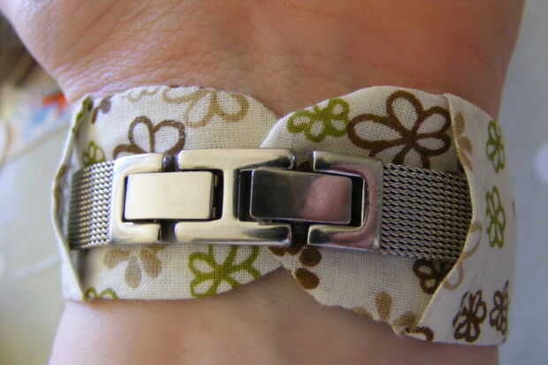 En este punto, deberías probar la correa con su reloj para comprobar que se trabaja. Como en la imagen, debe tener una correa con los extremos que se solapan ligeramente y túneles que pegan para arriba un poco de la correa principal. No mantenga a su reloj en su lugar muy bien todavía, pero eso no importa.