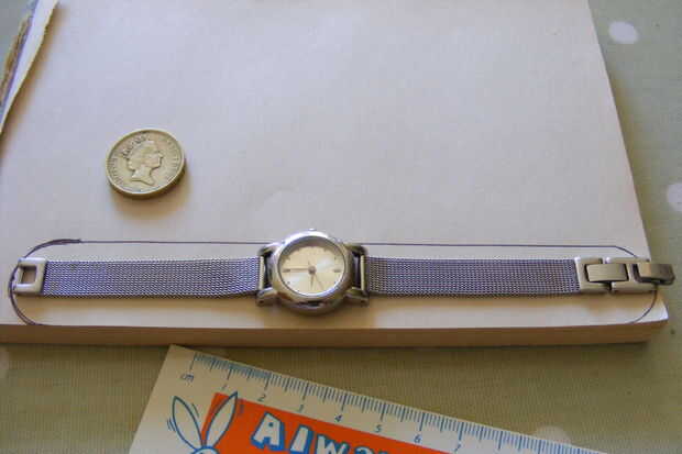 Marque la longitud de la watchstrap, menos cualquier traslapo donde sujeta. (Para que la correa para caber bien, el reloj deberá ser ligeramente suelto en su muñeca cuando sujeta.) Medir su muñeca para asegurarse de que la cinta pasará alrededor de él con un pequeño solapamiento.