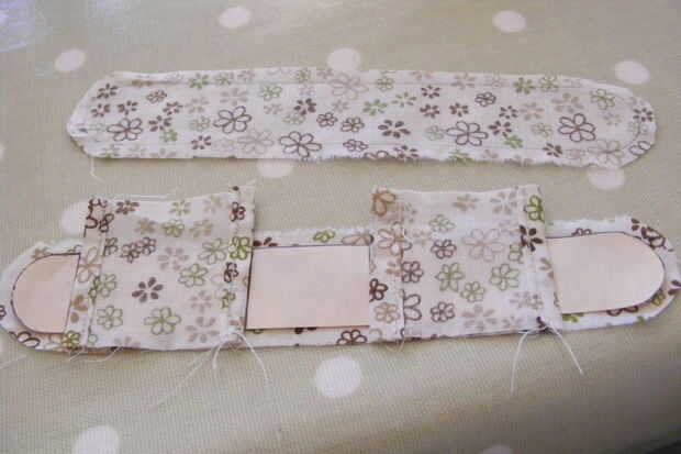 Pone uno de su correa principal piezas boca. Luego coloque los dos pedazos de túnel, lado equivocado, alineada con un borde. La plantilla puede ayudar a ver dónde colocar el borde, como en la imagen. Coincidir con el patrón si haces.