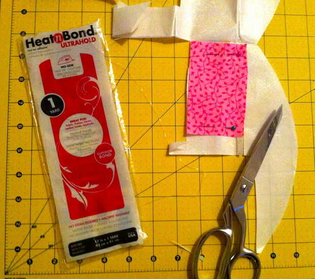 - Elegir una tela que se desea obtener el applique y cortar un rectángulo se ajusta alrededor de la forma como perfectamente posible. (Esto es para no perder tan poco del adhesivo como sea posible)