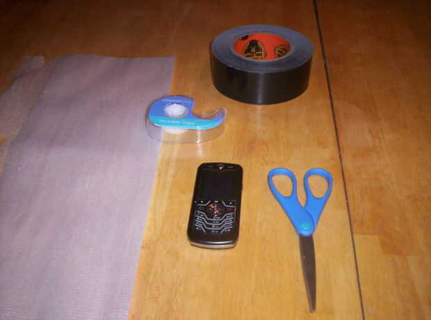 5. guarnición material. He usado la hoja fina de embalaje de espuma que viene en la caja con un teclado que ordenó en el trabajo. Puede usar cualquier cosa que no raye el teléfono. (Bolsa de plástico, sobres de Tyvek, etc.)