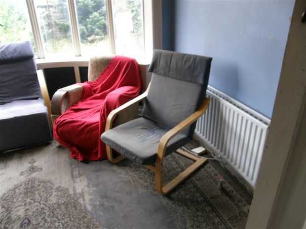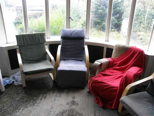 El sillón de aspecto divertido: ahora que silla fue en la casa y sigue siendo severamente deteriorada, aunque es cómoda y tiene un marco robusto y una forma cool. Por el momento una manta sobre él con una hoja plegada como una capa entre el loco picazón interna, es algún tipo de material de nylon como lana pero espinoso. Finalmente unas sábanas negras y una engrapadora a hacer una nueva cubierta para se...