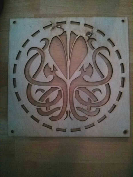 Debido a que encontramos una simple imagen, convirtiéndola en un archivo de corte para el cortador del laser fue muy fácil. Utilice la herramienta trace en Corel Draw, convierten la imagen raster en una imagen de vectores base. Con el fin de mantener suficiente material entre recortes y mantener su resistencia, era necesario un pequeño ajuste.