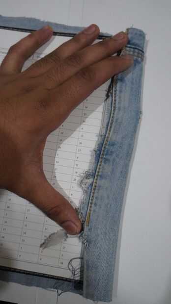 colocando al margen de los pantalones vaqueros dentro del diario tenga en cuenta que queremos que el bolsillo lleno fuera de sobre la faz del diario.