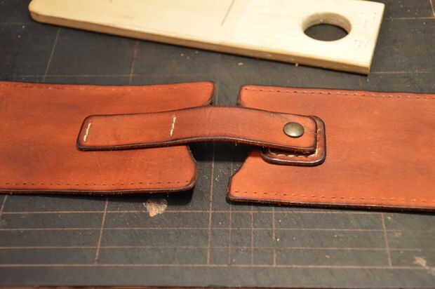 Estamos haciendo puntadas de silla de montar por lo que se requiere una aguja en cada extremo del hilo. Asegúrese de que tener suficiente hilo de la costura que está a punto de coser. Generalmente tomar la longitud de la costura veces 3 (1 longitud para cada lado de la piel y 1 largo para compensar el espesor de la piel. Si usas cuero más grueso que 3 mm puede utilizar hilo de un poco más). Recuerde que es mejor tener una tonelada de hilo sobrante que acabando 4 puntadas antes de que termine. Si se dirige a un nudo entre las 2 piezas que coser y seguir con otro pedazo de hilo.