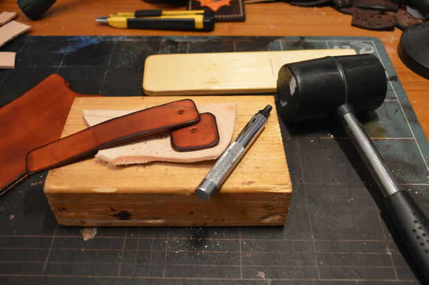 Si usted es nuevo a colocar botones a presión puede ser una buena idea para hacer una prueba en un pedazo de cuero de desecho, como pueden ser un poco complicados bloquear apropiado. Puede encontrar útiles videos en YouTube si no sabes cómo colocar botones a presión.