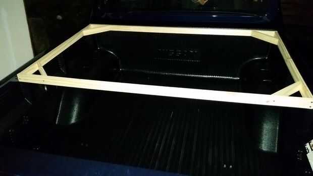 Preparar dos cuadros con la madera de 1 x 2, uno se fija al tronco y la segunda será la parte que se levanta. Ambos marcos deben encajar en los bordes de la cama con aproximadamente 1cm de espacio para el duraliner.