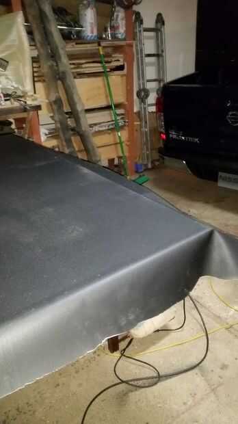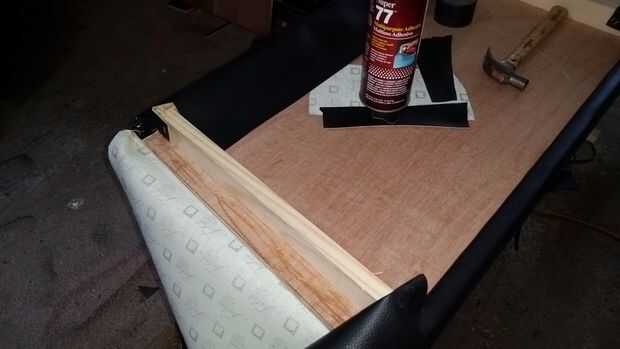 Con un montón de pegamento, envuelva las piezas de madera contrachapada con la tela de vinilo. Utilice la grapadora para sujetar y amarrar el vinilo en la parte posterior.