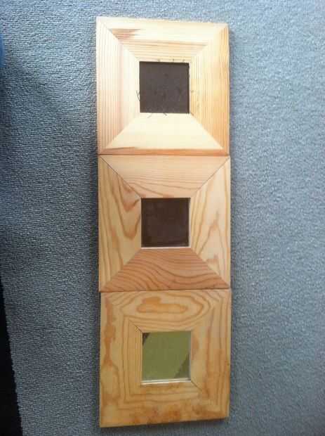 IKEA hace algunos agradable y decididamente no llana Plaza espejos llamado "Hönefoss." Son en forma hexagonales y vienen en una caja de 10 por $15 (5 de dos diferentes tonos de marrón). Usted puede leer todo sobre ellos en IKEA'Los espejos parec
