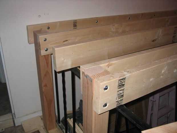 Puedes ver los pernos largos, arandelas y tuercas que se utilizan para mantener juntos los trozos grandes de madera