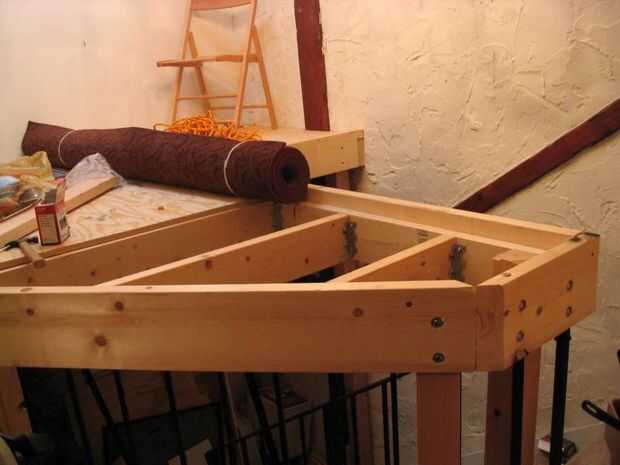 Se puede ver la madera que cubre la parte posterior. 5/8 de pulgada, que es bastante fuerte. Cortamos una pieza de forma irregular de la madera contrachapada a extender hacia la parte delantera también. El rollo de moqueta también fue cortado a la medida, para adaptarse a la forma de la cubierta.