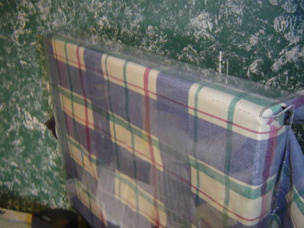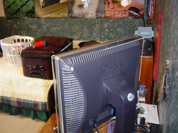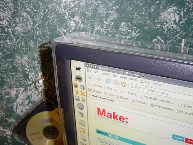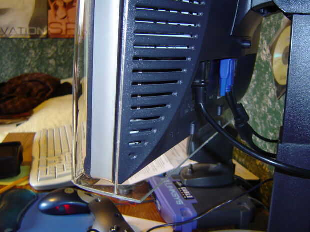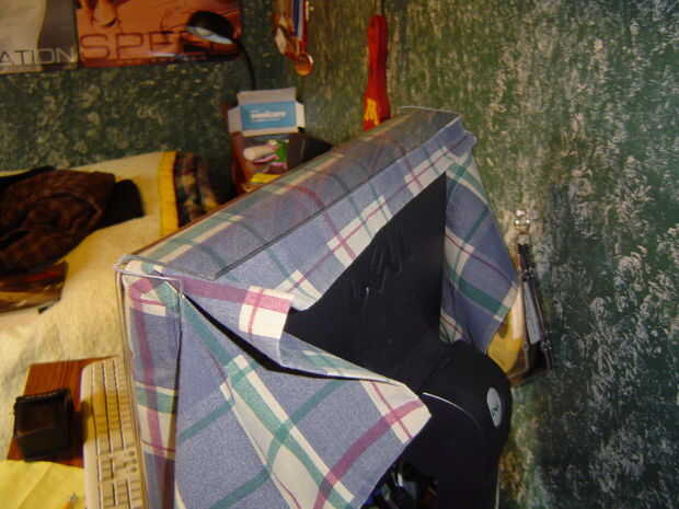 En las dos últimas fotos, puedes ver que he puesto una funda de almohada sobre el monitor para evitar que la nueva cubierta rebotando.