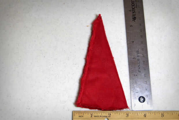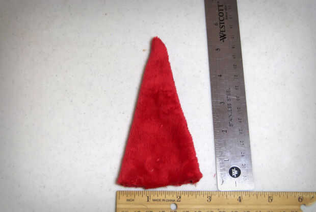 El cabezal de mi pulga es 3" de ancho y 1/2" de profundidad. Con estas medidas, doblar el tela derecho contra derecho juntos y corte un alargado del cono aproximadamente 3" de ancho y 5-1/2" alto. Con 1/4 costura cosida por el lado abierto, el sombrero se convirtió en aproximadamente 2-1/2" ancho resultada el lado derecho. Debe permitir que se extienden hasta un calce sobre el cabezal.
