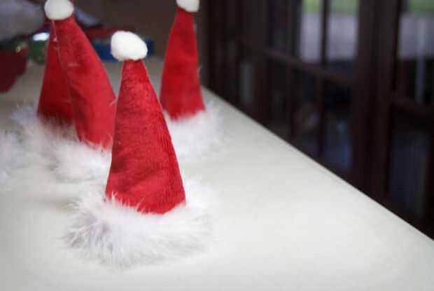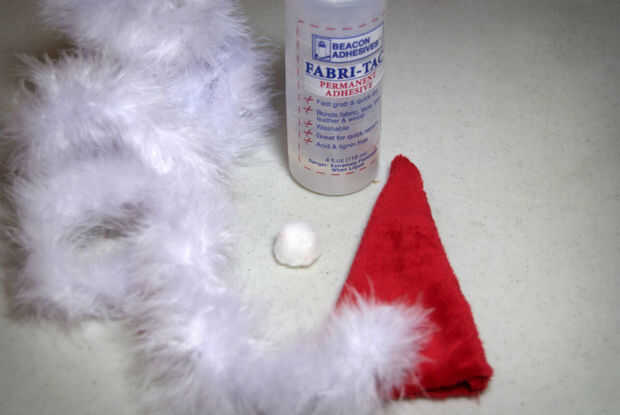 Pegue el adorno a la base del sombrero, utilizando una pistola de pegamento caliente o un pegamento de tela como Fabri-Tac.