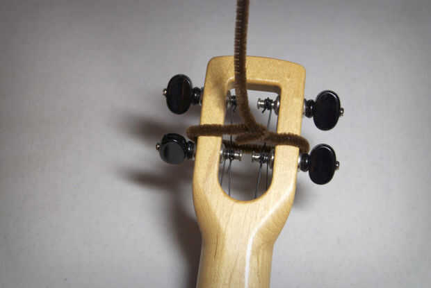 Hacer gancho un poco doblando el extremo de un tallo alrededor algo plano y fino, como una regla. Coloque el gancho en la parte trasera del cabezal y envolver el tallo alrededor de él, coger el gancho y girando hacia arriba.