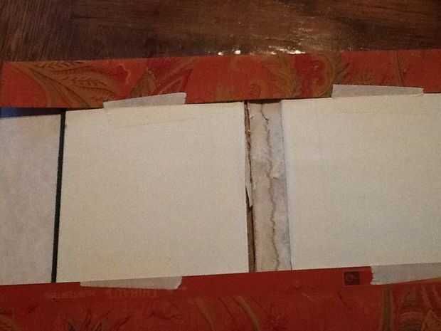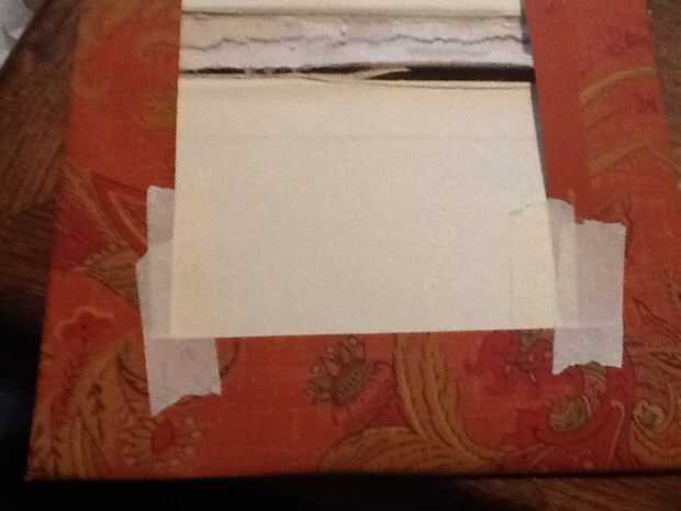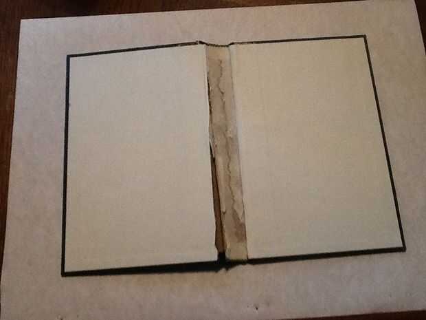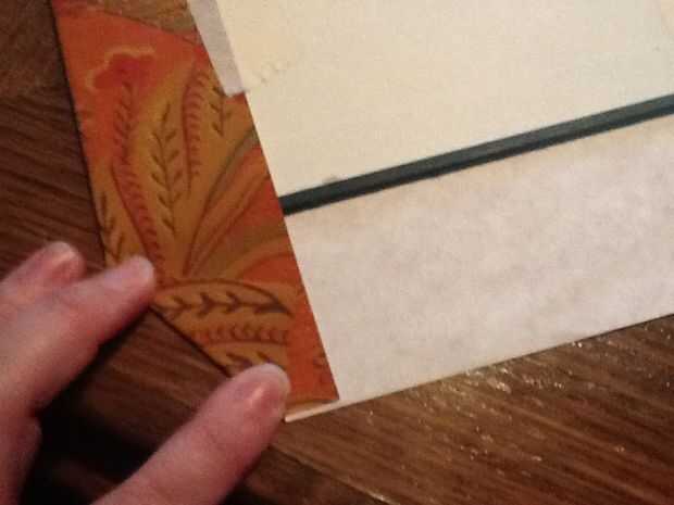 * Medir el libro a lo largo y ancho de sabio. Añadir 3" en todas las direcciones para permitir un espacio suficiente para plegar y cinta. Cortar el rectángulo. Fácil, ¿verdad?
