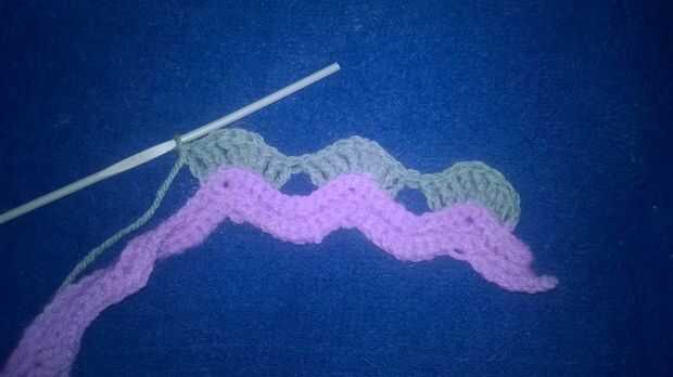 Slst en siguiente 3sts, ch3 {cambio de color como se muestra en la imagen de arriba}