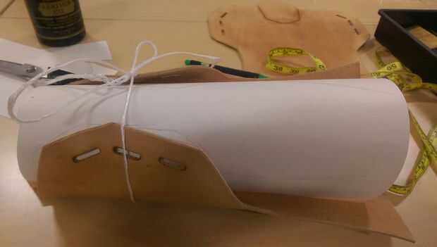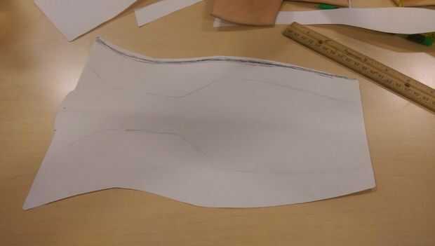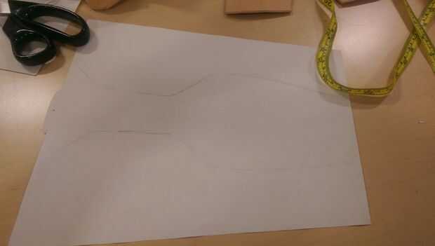 Aquí tomé uno de los frentes y lo envolvió en otra pieza de papel de dibujo, la medida a medida de la pantorrilla de mi cliente. entonces ligeramente remontar alrededor de los bordes de la parte delantera en el papel. usando eso, había añadido un par de pulgadas superposición en cada lado.