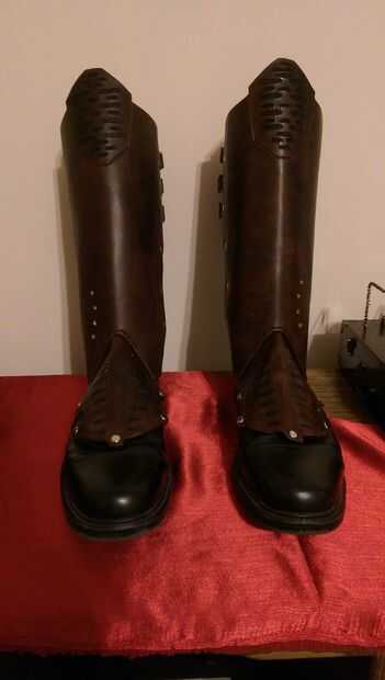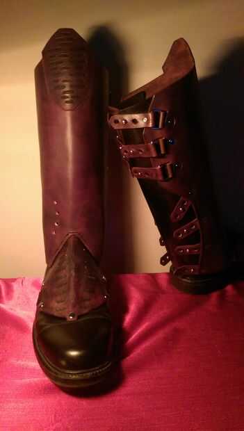 luego coser las partes superiores a las cubiertas de encaje y puñetazos una doble hilera de puntadas agujeros en ambos lados de cada encaje la cubierta (ver foto primer plano) y cosen a una cinta elástica para sujetar que el encaje cubre el zapato mientras está siendo usados.