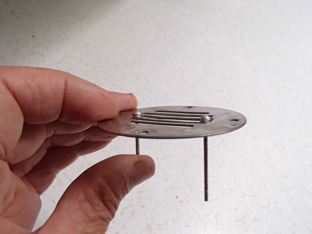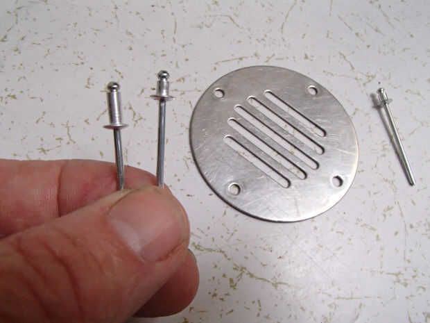 En su lugar decidí utilizar remaches para fijar la cubierta libremente sobre el agujero de drenaje.