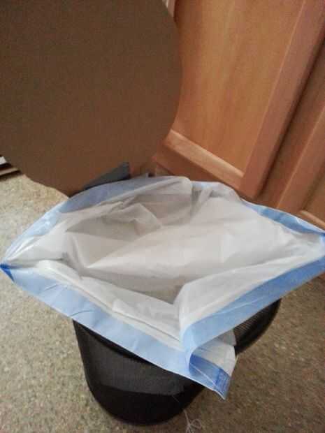 Un truco final, no en la foto, fue el descubrimiento y posterior molestia por novio le que el coeficiente de fricción entre el recipiente y el suelo es lo suficientemente bajo como para que la fuerza necesaria para mover el cubo es en el tiempo menos que la fuerza necesaria para mover la tapa. En lugar de rellenar el recipiente, es aconsejable atar a una pata de mesa convenientemente colocados. Esto evitar que el cubo se mueva y tenga un efecto positivo sobre la experiencia del usuario.
