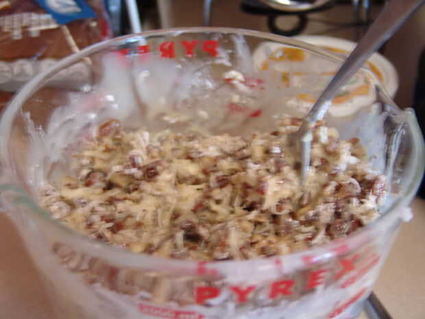 Pongan todo en su recipiente (ser orilla que un tazón de fuente grande, hace un poco) y mezclar.