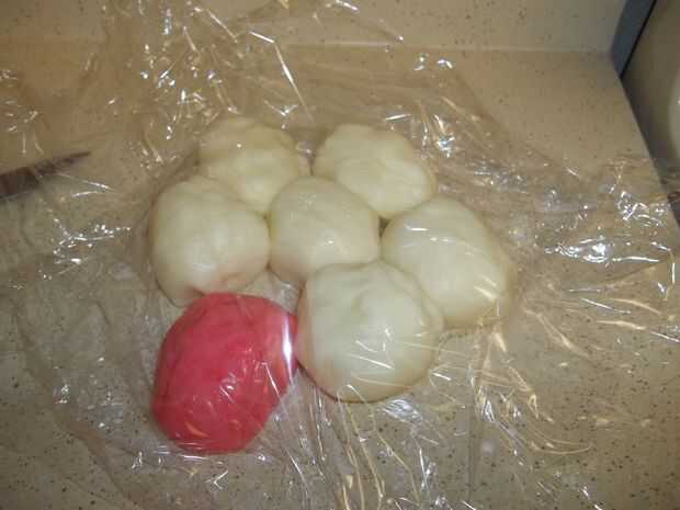 Amasar el chocolate para ablandar para arriba. Separado en ocho iguales piezas probablemente sólo necesita siete pero de bueno tener una copia de seguridad en caso de cometer un error o no puede resistirse a comer uno como yo no podía.