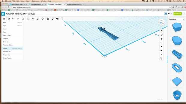 Para modelado 3D usé diseño Autodesk 123D. Curiosamente, sólo puede importar. Versión basada en archivos SVG usando su navegador en línea.