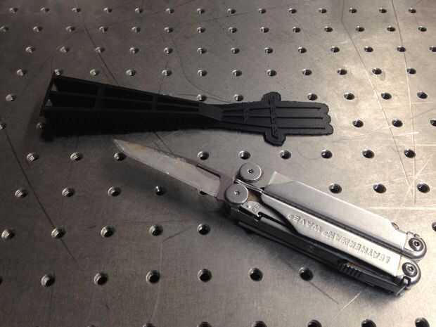 Después de la impresión usé un cuchillo para cortar a este trazado y la capa base. Esto era más difícil que hubiera gustado y podrían evitarse idealmente en una impresora mejor. Desafortunadamente la cabeza de la horquilla era demasiado delicada a completamente cortado de la capa de base sin destruirlo totalmente, así que salí sola. Eso es porqué la horquilla parece más como una espátula...