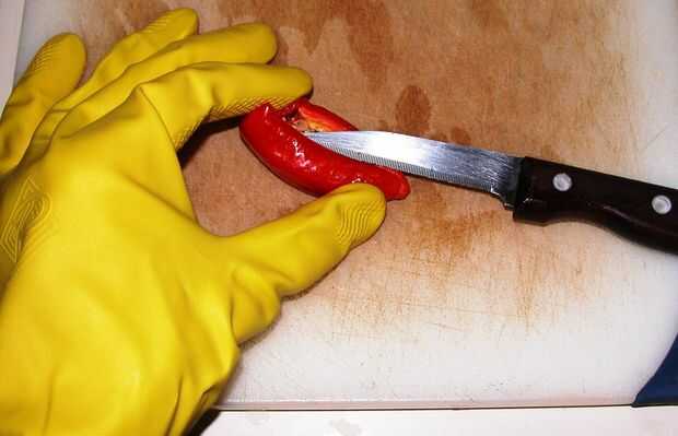 Colóquese los guantes y retirar tallos de Jalapeños si está presente. Con el cuchillo, corte la pared de cada Jalapeño de arriba a abajo sin cortar completamente a través del Jalapeño entero. Ir para la mirada de goma moneda monedero.