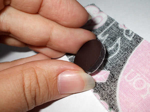 Retire el papel protector de adhesivo en la parte posterior del imán. Con cuidado coloque el imán en la parte posterior de la tela en el lugar decidida en el último paso. Aplasta a la tela al imán por lo que se conecta bien.