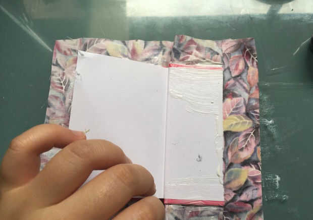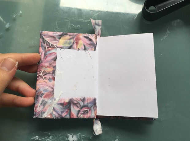 Usted tendrá que envolver los bordes de la tapa interior del libro.