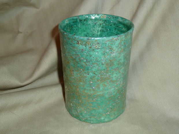 Tomar el papel de tejido y hacer dos capas en el sostenedor de la pluma. Esto es más fácil si empieza desde el interior y desde allí. Cuando se cubre el interior, deja secar y luego hacer el exterior. Después de que esté totalmente seco, pintar con una capa de Mod Podge. Que este seco. Aquí el que hice para el tutorial después la segunda capa de Mod Podge, añade brillo y selló.