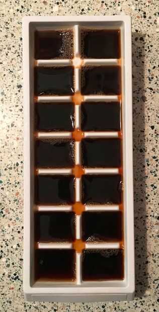 Coloque en el congelador durante unas horas hasta que estén congelados los cubos de café.